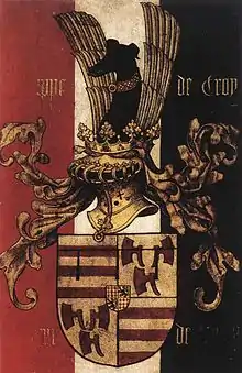 This dynastic house, which originally adopted its name from the Château de Crouy-Saint-Pierre in French Picardy, claimed descent from the Hungarian[2] Prince Marc,[3] (if true, he was likely a grandson of Prince Géza) who allegedly settled in France in 1147, where he married an heiress to the barony of Croÿ. The Croÿ family rose to prominence under the Dukes of Burgundy. Later, they became actively involved in the complex politics of France, Spain, Austria, and the Low Countries.