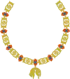 Sancho VII of Navarre changed his coat of arms to commemorate the victory at the Battle of Las Navas de Tolosa on 16 July 1212, where he and his knights defeated the Black Guard of the Almohad caliph Muhammad al-Nasir, known as Miramamolin. He changed his coat of arms from an eagle in sable (black) to a shield ground in gules (red), a chain of or (gold/yellow) with eight links, and one green emerald in its center. The chain represented the stockade composed of the Black Guard and the emerald symbolized the caliph who was known by his nickname the Green.[4][5][6][7]