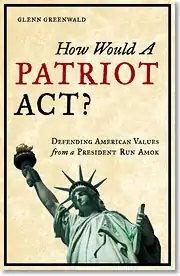 How Would a Patriot Act? Defending American Values from a President Run Amok is a New York Times best selling[1] book by constitutional lawyer and blogger Glenn Greenwald that appeared in May 2006. Greenwald attacks what he argues is the illegal activity of the Bush administration in warrantless wiretapping and other matters, providing citations from Supreme Court decisions, Congressional statements, and writings by the Founding Fathers of the United States.