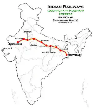 The 12307 / 12308 Howrah–Jodhpur Express is a Superfast Express train belonging to Indian Railways that runs between Howrah Junction and Jodhpur in India. It operates as train number 12307 from Howrah Junction to Jodhpur and as train number 12308 in the reverse direction.