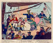 In 1793–94 the Royal Navy purchased 19 Dutch hoys as coastal gun-vessels, particularly for service under Admiral Sir Sidney Smith. In naval service these had 30-man crews and each carried one 24-pounder gun and three 32-pounder carronades.[6] Examples include HMS Scourge and HMS Shark (Shark's crew mutinied in 1795 and handed her over to the French). Around the end of the French Revolutionary Wars, the Navy sold its remaining armed hoys.