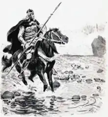 Now the saga introduces Einar, a shepherd of Hrafnkell's. On one occasion Einar needs to ride to perform his duties, but every horse he approaches runs away from him except Freyfaxi. He then takes Freyfaxi and rides him for the day. But after the horse has been ridden it runs home to Aðalból and starts neighing. On seeing his horse dirty and wet with sweat, Hrafnkell realises what has happened. He rides out with his axe and reluctantly kills Einar to fulfil his oath.