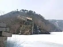 The Great Wall of China runs through the district and some of the choicest tourist sections are located in the district.[7] The portion known as Mutianyu is one of the most popular sections of the Great Wall for tourists.[7] The Lakeside Great Wall in Huanghuacheng village, Jiuduhe is another tourist section known for the proximity of the Great Wall to man-made reservoir and even parts of the Great Wall are submerged under the lake water.[7]