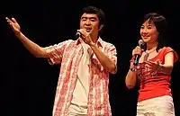The theme of Huangmei opera began to expand with its initial introduction in Hong Kong via the 1959 film The Kingdom and the Beauty (江山美人). The artform is believed to have come from the massive wave of immigrants from mainland China to Hong Kong in the 1950s. The film that peaked the music genre was 1963's The Love Eterne.[1] The audience was attracted by the rewritten music style which combined both Chinese and Western musical instruments. The tempo was also livelier and faster than the traditional opera. During this period, many Huangmei films were made, evolving into various forms and combinations, which later included wuxia sword fights. Because the genre has such a heavy association with romance films like The Love Eterne, it is sometimes preferred that the singing be done with a male and a female pair.