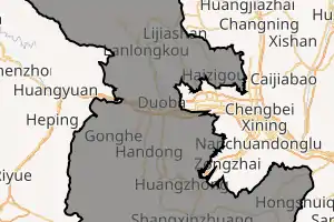 Huangzhong has been inhabited since at least 4,000 years ago, as shown by archeological excavations in Lijiashan town. Later, the area belonged to the Qiang people. Since the capture of Xining by Emperor Wu of Han, Huangzhong has been part of the Chinese dynasties. The Han dynasty rulers established a county called Linqiang (临羌县) in the area, governed by Jincheng (Lanzhou). In 1943, the county seat was moved to Lushar town, and the county was named Huangzhong County, after the Huangshui river basin.[2] In 2020 Huangzhong County was changed to Huangzhong District of Xining.[1]