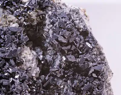 The Huarón Mining District is one of the richest polymetallic (Zn-Pb-Ag-Cu-(Au)) deposit clusters in Peru. It is located 20 km SSW of Cerro de Pasco, in the Huayllay District, Pasco Province, Pasco Department, between 4500 and 4700 m.a.s.l. The Huarón Mining District belongs to the Miocene polymetallic belt of the Central Andes.[1][2] Hydrothermal mineralization occurs as predominantly in N-S to NNW-SSW and E-W veins as well as in "mantos" replacing favorable sedimentary rock. Epithermal hydrothermal fluids are thought to be derived from quartz-monzonitic intrusions tentatively dated at 7.4 Ma (K-Ar on adularia).[3] The most important economic minerals are tennantite‐tetrahedrite (containing most of the silver), sphalerite, galena, and chalcopyrite. Silver is also found in pyrargyrite, proustite, polybasite, and pearceite. In the central copper core of the Huarón deposit, enargite occurs.[4] Main gangue minerals are pyrite, quartz, rhodochrosite, and calcite.[4]