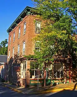 The hamlets, particularly Rhinecliff and Tivoli, also reflect the area's original land distributions. Many of their houses are small two-story frame structures in Victorian styles that occupy small lots on narrow streets. Commercial buildings, in the core neighborhoods, usually occupy the ground floors of such houses or small brick buildings. The landowners often donated money for various public buildings like churches and schools, such as Rhinecliff's Morton Memorial Library.