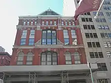 60 Hudson Street, the former Western Union headquarters that later was converted into an internet hub, is located between Worth and Thomas Streets in Tribeca.[1] Just to the north, the former New York Mercantile Exchange building is located at the corner of Hudson and Harrison Streets in Tribeca. Other notable buildings on this stretch of Hudson Street include The Church of St. Luke in the Fields and its garden, the White Horse Tavern (notorious for being the bar where poet Dylan Thomas drank and collapsed before he died of alcohol poisoning), and the headquarters of radio station WQHT ("Hot 97"), which has been the site of several shootings including a gunfight between the entourages of 50 Cent and The Game in 2005.[2] The street is also home to the U.S. headquarters of the Pearson-owned Penguin Group. The Money.net firm is located at 333 Hudson Street, maker of an alternative platform to the Bloomberg Terminal.