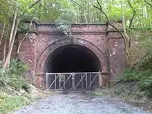 The final tunnel on the line was Brierley Tunnel which is 685 yards (626 m) long. The line then passed westward through Brierley junction where a southward-turning chord connected with the Dearne Valley Railway on which the H&BR had running powers. A northward continuation of the Dearne Valley Railway was then passed under.[27]