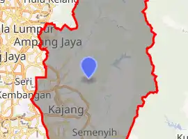 Hulu Langat District is a district located in the southeastern corner of Selangor, between Kuala Lumpur and Negeri Sembilan. It is bordered by the state of Pahang to the east and north, Gombak district to the north-west, Federal Territory of Kuala Lumpur and Petaling district to the west, Sepang district to the south-west, and state of Negeri Sembilan to the south.
