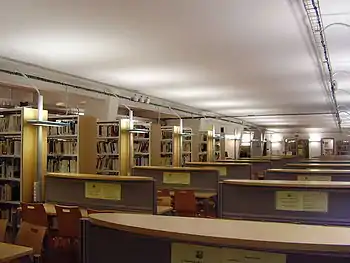 The library, founded by Lucienne Thomas, had the same fate as the CES. First situated in Rue de Varenne (7th arrondissement), it moved to Rue Cardinet (17th arrondissement) in 1959. Its aim is to buy and make available books and knowledge to researchers but also to indicate the resources at a national scale: thus, the library is in charge of the "sociology" section of the Bulletin Signalétique (a kind of bibliography of French science articles) at the beginning of the 70s.[1]