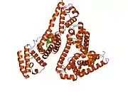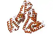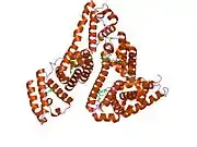 - Komatsu T, Nakagawa A, Curry S, Tsuchida E, Murata K, Nakamura N, Ohno H (September 2009). "The role of an amino acid triad at the entrance of the heme pocket in human serum albumin for O(2) and CO binding to iron protoporphyrin IX". Organic & Biomolecular Chemistry. 7 (18): 3836–3841. doi:10.1039/b909794e. PMID 19707690.