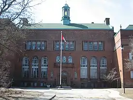 Humberside was established in 1892 as "Toronto Junction High School" in the basement of the local Presbyterian church. It moved to the current site in 1894 in the High Park area of Toronto, with the construction of a new Richardsonian Romanesque building. In 1903, the school was renamed "Toronto Junction Collegiate Institute", after a local street that runs west from Dundas Street West, past Keele Street to the school's main entrance. In 1909, the school was changed to "Humberside Collegiate Institute" and became part of the Toronto Board of Education when the Junction was annexed by the City of Toronto.[3] In 1910 an addition was added by Charles Hartnoll Bishop.[4] During World War I, many students lost their lives in battle. The front entrance is now a memorial to those who lost their lives, and for quite some time, it was not allowed to be used, until recently. Names were added to the memorial after World War II. The school's yearbook, Hermes, named for the Olympian god of the same name, was established in 1925. The student council was formed in 1931, and three decades later, the school held its first formal dance.
