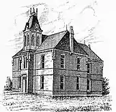 The children of Humphreys were educated in a typical one-room rural schoolhouse, located about three-fourths of a mile northwest of the community until 1885. At that time, the elementary and secondary education were combined with and housed in the building containing the Humphreys College and Business Institute. The College was established in 1884 on four acres of land donated by James M. Stringer. A large two-story brick structure was constructed between June and September 1884, with the first class admission beginning on September 29 of the aforementioned year. Humphreys College was co-education and offered two course tracks of study—preparatory and collegiate, with a reported enrollment in 1887 of 157 students. No dormitories were constructed; however, ample housing was available in the town's hotels and private homes.[10] Humphreys College and Business Institute was completely destroyed by fire on April 8, 1893.[11]