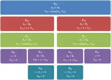 Let Pij be the length of the longest common subsequence for the first i elements of A and the first j elements B.