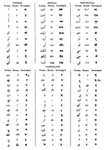 | व | و | v, ʋ, w | w, v | v | In Marathi, [w], except [v] before [i]; [v], [ʋ], [w] allophony in Hindi |
