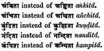 | अं | ں, ن, م | ŋ, m | n, m | ṅ, ṁ | Differentiation between dental and labial anusvara |