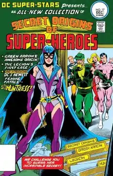 {{cite book}}:|first2=has generic name (help) - DC Super Stars #17 (November-December 1977) at the Grand Comics Database: "Origin and first appearance of the Helena Wayne Huntress, who simultaneously first appears in this issue and All-Star Comics (DC, 1976 series) #69, both released August 24, 1977".