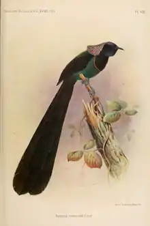 The generic name, Astrapia, is derived from the Greek word Astrapaios, which means "flash of lightning", referring to the iridescent plumage of the genus. Its specific name, rothschildi, is for Lord Walter Rothschild, a famous collector who kept the first specimen in his private museum sent to him by German naturalist Carl Wahnes.[2]