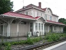 Huopalahti railway station (Finnish: Huopalahden rautatieasema, Swedish: Hoplax järnvägsstation) is a railway station on the VR commuter rail network located in northern Helsinki, Finland. It is located about 6 kilometres (4 mi) to the north/northwest of Helsinki Central railway station.