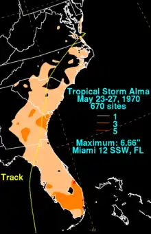 - National Hurricane Center (1970). "Hurricane Alma — Rainfall". Retrieved 2009-10-26.