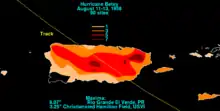 ![]() Hurricane Betsy near landfall in southern Puerto Rico | |