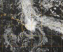 Classified as Tropical Depression Five-E, the system tracked westward under the steering currents of a mid-level ridge.[3] In the hours after formation, the depression lacked a concentration of deep convection near the center. Conditions favored development, including warm sea surface temperatures, very low amounts of wind shear, and an established anticyclone over the cyclone.[4] Convection became more centralized, coinciding with the improvement of upper-level outflow. Based on Dvorak classifications, it is estimated that the cyclone intensified into Tropical Storm Daniel at 12:00 UTC on July 17.[5] Daniel quickly became better organized, exhibiting increased thunderstorm activity and banding features.[6] A central dense overcast developed, and a well-defined rainband wrapped around the center of circulation.[7] Based on the formation of an eye feature,[8] the National Hurricane Center upgraded Daniel to hurricane status late on July 18 while it was located about 885 miles (1420 km) south-southwest of Cabo San Lucas.[1]