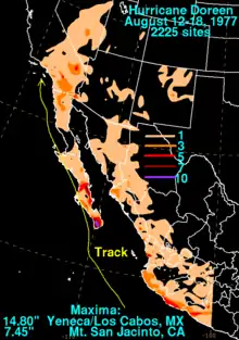 ![]() Hurricane Doreen on August 15, 1977 | |