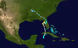 - Williams & Duedall (1997). "Florida Hurricanes and Tropical Storms" (PDF). University Press of Florida. Archived from the original (PDF) on 2007-07-13. Retrieved 2007-07-05.