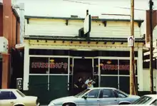 Hussong's founder, John Hussong, was born as "Johann" in Landau, Germany in 1863.[7] Johann emigrated to the United States from Germany in 1888, and changed his name to John.[4][5] In 1889, the discovery of gold south of the border lured John to Ensenada.[4] John made a living hunting and trading supplies up and down the Baja coast. In June 1891, while on a trading expedition to El Arco, John's carriage flipped over, and his companion, Newt House, fractured his leg.[4] John brought Newt to recuperate at Meiggs' Bar, which back then, was Ensenada's only watering hole.[4] Two days after John and Newt arrived at the bar, Meiggs attacked his wife with an axe. When Meiggs was sent to jail, his wife fled to California.[4] When he got out of jail, Meiggs went in search of his wife, and asked John to mind the bar until he returned. Neither Meiggs nor his wife ever returned.[4]