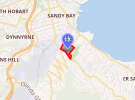 By the 1950s the School was growing too large for its inner-city site and in 1957 a new Junior School was built on an elevated site overlooking the River Derwent at Sandy Bay. This followed the opening at the Sandy Bay site of a sub-primary section in 1946 and the Memorial Oval and pavilion in 1955. The Senior School was later constructed on the adjacent site of the former Queenborough Cemetery, following a council referendum in which ratepayers voted '1 for educational purposes' in 1960.[5] By 1964 the Senior School campus encompassed a boarding house and science wing, quickly followed by an administration block and classrooms, while the Junior School campus across the road soon expanded to include a fledgling Middle School. The Macquarie Street building was sold in 1965, with Hutchins commencing full operations at Sandy Bay the following year.