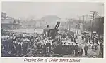 In September 1905, the school's name was changed to Technical High School, pending the move to a new building to be built on Cedar Street and Clinton Ave; the cornerstone was laid on November 14, 1912.[1] The Cedar Street building opened on July 14, 1918 with an enrollment of 1009 students, 863 boys and 146 girls. It offered evening classes, the first of its kind in Buffalo at the time.
