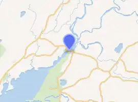 The bridge is located at Ferjukot farmstead, about 4 kilometres (2.5 mi) upstream of the Hvítá′s mouth to Borgarfjörður, on the area of today’s municipality of Borgarbyggð.