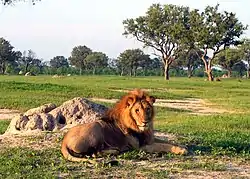 Other major predators include the lion, whose distribution and hunting in Hwange is strongly related to the pans and waterholes.[30] Since 2005, the protected area is considered a Lion Conservation Unit together with the Okavango Delta.[31]
