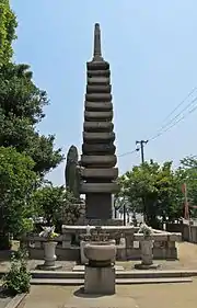 As part of the Shogunate's efforts to protect Japan from Western colonial forces, the defence of Hyogo Port was upgraded with the construction of the Wadamisaki Battery, one of six land batteries built around Osaka Bay under the design of Count Katsu Kaishū. It was completed in 1864 after 18 months of construction at a cost of 25,000 ryō.[8] The outer enceinte was built of granite from the Shiwaku Islands and the inner two-storey structure was made of keyaki (Japanese elm) wood harvested from the Nunobiki and Tekkai Mountains in Kobe.[8] In 1921 the battery was the first place in Hyogo Prefecture to be designated as a historic site by the prefectural government.[8]
