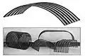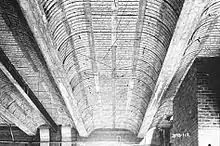 Hy-Rib is a steel encasement stiffened by rigid ribs used in reinforced walls, ceilings, and floors.[2] They are helical hooping units of steel sheathing forms used in concrete, stucco and plaster.[3] Hy-Rib products are a derivative of the "wings" used in the patented Kahn System of reinforced concrete, invented by Julius Kahn in 1903.[4] The products are made from a single plate of steel.[2] Hy-Rib products were used in concrete doors, ceilings, and roofs.[2] It was also used in sidings, partitions and ceilings to eliminate channels.[2] Hy-Rib products were designed to take on plaster and cement to eliminate layout forms in the construction of buildings.[2] The steel sheet form would be embedded with plaster or cement directly and would flow into the lath surface to attach itself to the steel and harden to secure the material into the steel.[5]