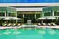 The hotel is 18 floors tall and has a total of 327 rooms, including 21 suites,[12] and covers about 600,000 sq ft,[11] with more than 20,000 sq ft (1,900 sq m) of versatile convention and event space and a sun-filled atrium lobby with water features and green landscaping. It also has a fitness centre, the Chic Lobby Lounge, Biscotti—the hotel's gourmet deli, Spice Haat—the 240-seat all-day-dining buffet restaurant[13] and Stix serving authentic Chinese cuisine from the Sichuan region. The Spice Haat has five interactive kitchens across a space of over 9,000 sq ft (842 sq m). Each of the five live kitchens specialises in a specific culinary genre within the Indian Comfort food landscape. The Lobby Lounge, the 24-hour lounge, is set amidst the indoor green landscaping under the hotel atrium. The hotel also has an outdoor pool, which overlooks the city, and is set amidst custom-made art installations and lush landscaping. Additional hotel services and amenities include Regency Club, the Siddh Spa, the hotel's premium suites, specialty restaurant and a bar.[14] The hotel also houses one of the largest collections of publicly displayed art installations in the country created by more than 40 national and international artists.[15]