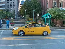 The City Council passed a bill in 2003 requiring the New York City Taxi and Limousine Commission to set aside a proportion of new taxi medallions to be granted to vehicles that use cleaner fuels. The Commission cleared the first six hybrid models to be used as taxicabs by mid-2005 as there were concerns about which hybrids on the market had enough leg room.[23] The models authorized were the Ford Escape Hybrid, Toyota Highlander Hybrid, Lexus RX 400h, Toyota Prius, Honda Accord Hybrid, and Honda Civic Hybrid.[23] The first 27 hybrid taxis entered service in November 2005.[24]