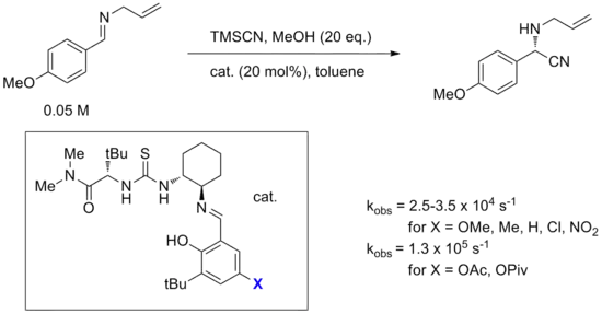 - Zuend, S. J.; Jacobsen, E. N. (September 2009). "Mechanism of amido-thiourea catalyzed enantioselective imine hydrocyanation: transition state stabilization via multiple non-covalent interactions". J. Am. Chem. Soc. 131 (42): 15358–15374. doi:10.1021/ja9058958. PMC 2783581. PMID 19778044.