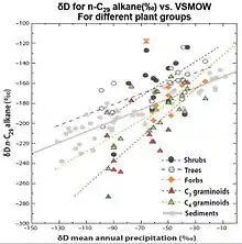- Pedentchouk, Nikolai; Sumner, William; Tipple, Brett; Pagani, Mark (2008-08-01). "δ13C and δD compositions of n-alkanes from modern angiosperms and conifers: An experimental set up in central Washington State, USA". Organic Geochemistry. Advances in Organic Geochemistry 2007Proceedings of the 23rd International Meeting on Organic Geochemistry. 39 (8): 1066–1071. doi:10.1016/j.orggeochem.2008.02.005.