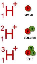 . The term "hydron", endorsed by the IUPAC, includes cations of hydrogen regardless of their isotopic composition: thus it refers collectively to protons (1H+) for the protium isotope, deuterons (2H+ or D+) for the deuterium isotope, and tritons (3H+ or T+) for the tritium isotope.