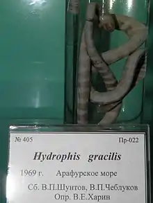 The graceful small-headed sea snake or slender sea snake (Hydrophis gracilis) is a species of Elapidae (Hydrophiinae-sea snake). Microcephalophis gracilis is a synonym of the snake.