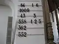A hymn board is a board in a church building that lists the hymns that will be sung during the service. Normally, the hymns are indicated by the number under which the hymn appears in the church's hymnal. The display of hymn numbers in this way can allow the congregation to bookmark the relevant pages of the hymnal in advance, to make it easier to worship during the service.[1] Hymn numbers may also be printed on a notice sheet distributed before the service.[2]