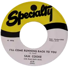 "I'll Come Running Back to You" is a song written and recorded by American singer-songwriter Sam Cooke, released November 18, 1957, by Specialty Records. The songwriting credit was attributed to "S. Cook" by the label. The song was a number one hit on Billboard's Hot R&B Sides chart, and also peaked at No. 18 on the Billboard Hot 100.