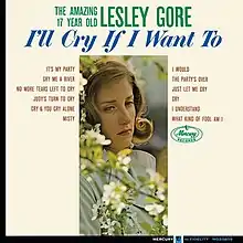 I'll Cry If I Want To is the debut album of Lesley Gore. The album included her hit singles "It's My Party" and its follow-up, "Judy's Turn to Cry". The album was rushed out after "It's My Party" became a big hit, and the songs are mostly about crying, linking to the hit single's first line "It's my party and I'll cry if I want to", incorporating songs with titles such as "Cry", "Just Let Me Cry" and "Cry and You Cry Alone".[1][2] Besides the hit singles, the album included pop standards such as "Misty", "Cry Me a River" and "What Kind of Fool Am I?".[1] The album reached number 24 on the US Billboard 200.[3][4] Edsel Records released the album on Compact Disc in 2000 in combination with Gore's second album, Lesley Gore Sings of Mixed-Up Hearts.[5] The album was named the 181st best album of the 1960s by Pitchfork.[6]