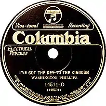 "I've Got the Key to the Kingdom" is a gospel blues song recorded in 1929 by Washington Phillips (1880–1954, vocals and zither).[1]