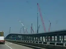 ![]() The high-rise portion under construction near the North Shore of Lake Pontchartrain, February 2009, with the old eastbound span also visible | |