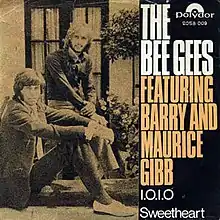 The title "I.O.I.O." is derived from the calls on the chorus sung by Maurice accompanied by Colin's drumming, and Barry sings the verses and plays guitar. Former Bee Gees guitarist Vince Melouney was featured, having played the guitar on the song's first session on 12 June 1968 during sessions for Idea, but was not present when the song was finished, as he left the group following the album Odessa.[3] The song's second session was October 8, 1969 after they had recorded "Twinky" (unreleased) and "The Chance of Love". (Pentangle drummer Terry Cox added drums on the October 8 sessions)[4] Maurice claims that the song was not even quite finished, but it still had Barry's guide vocal on it. The song also is notable for being the only Bee Gees A-side single to feature any vocal solos from Maurice Gibb, these being on the "I.O." chant.[5]