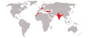 In August 2007, the government of India was negotiating to purchase eight to ten Harop systems.[3] In September 2009, the Indian Air Force announced that it will be inducting the Harop systems purchased for US$100 million "for up to 10 drones".[8] The Harop was publicly unveiled to the world for the first time in India, in the lead-up to the Aero India 2009 show.[6] In February 2019, the Indian Air Force decided to add another 54 Harop drones to its fleet of around 110 of these drones, which they had renamed P-4.[9]