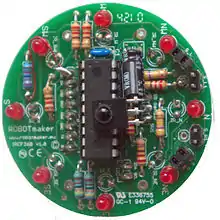 | CPU | Microchip PIC16F88 8 MHz internal oscillator, 200 nanosecond instruction execution, 35 single word instructions, CMOS Flash-based 8-bit microcontroller packs Microchip’s powerful PIC® architecture into an 18-pin package, a capture/compare/PWM, an Addressable USART, (I²C™) bus, 10-bit Analog-to-Digital (A/D) converter and 2 Comparators.[2] |